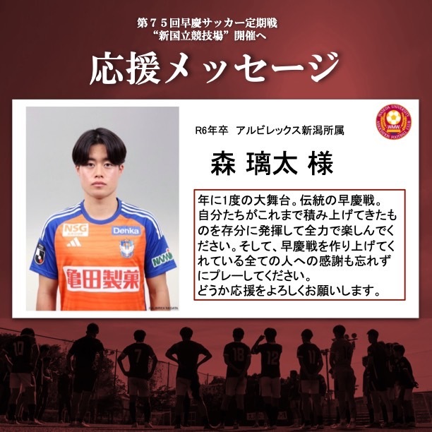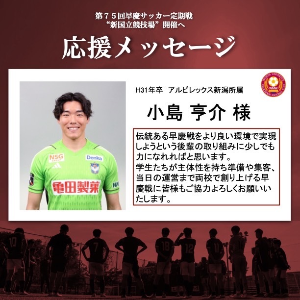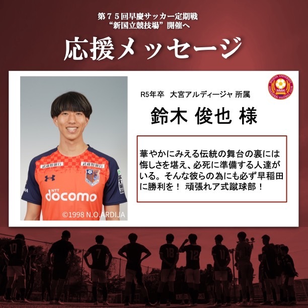 クラウドファンディング実施にあたり、ア式蹴球部OBの皆様から応援メッセージをいただいております🔥