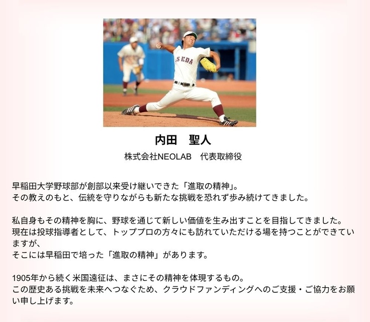 早稲田大学野球部のクラウドファンディングに向けて、弊部OBの内田聖人さんから応援メッセージを頂戴しました。