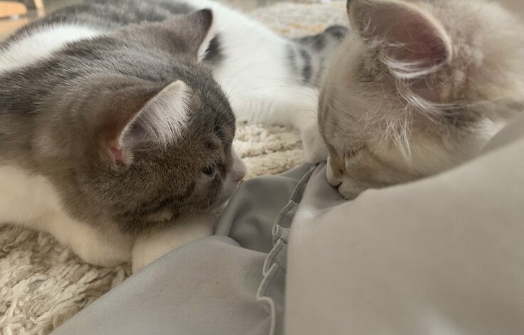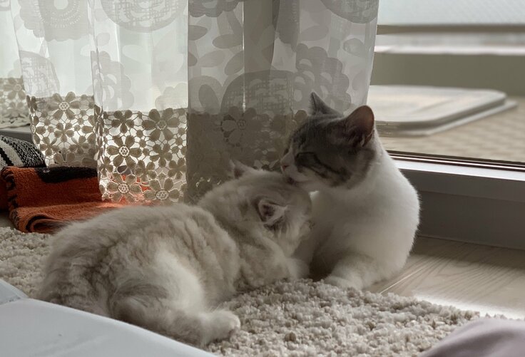 わたが家に来てから約2か月ほどですが、家に来てから3週間経った頃、わたはリビングの机からうまく着地できずに左足を骨折し、動き回って骨がずれるのを防ぐために、1か月ほどケージで生活をさせる必要がありました。そして今はFIPを発症してしまい、他の猫への感染の恐れがあるということで、同居猫のモナとは隔離し、寝室で生活してもらっています。骨折が完治したと診断されてから、FIPの疑いがあると診断されたのはわずか3日後のことです。うちに来てから不幸続きでわたに不自由で苦しい思いばかりさせ、骨折のストレスが原因でFIPを発症したのかと思うと、自分の不注意でこんな状況を招いてしまって、あの時もっと注意を払っておけばよかったと、後悔しかありません。