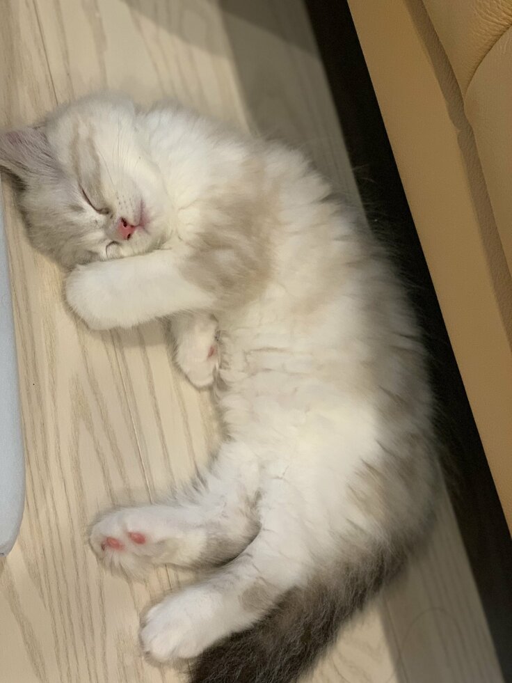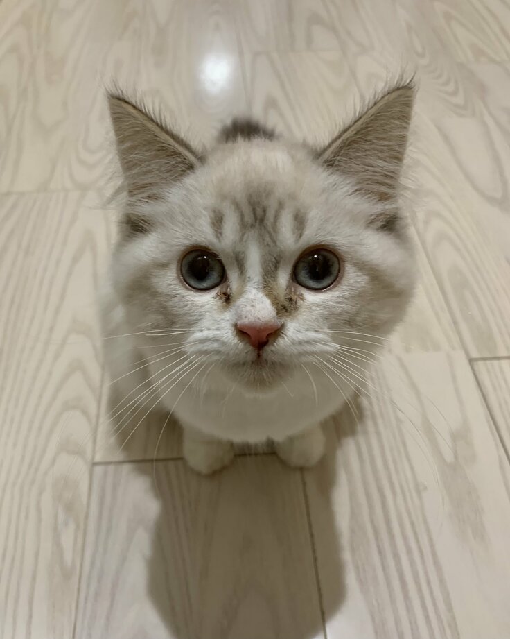 わたは大阪のブリーダーさんから迎え入れた子です。今もですが、小さいのに勇ましい表情がとても愛らしかったです。家に来たばかりの頃は、活発で食欲旺盛で、小さい体で同居猫のモナに喧嘩をうって、毎日一緒に遊んでいました。