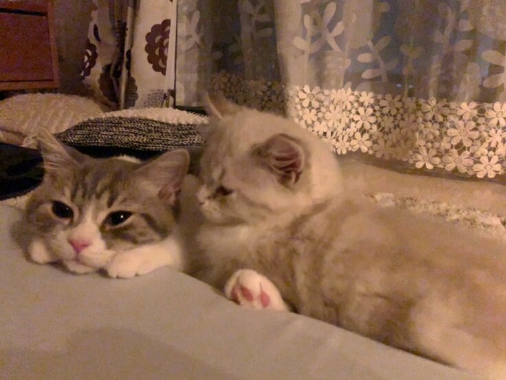 家に来たばかりの時は、おとなしくて静かな子かと思っていましたが、同居猫のモナに自分から喧嘩を売ったり、モナの残していたごはんまで食べるほど食欲旺盛で元気で活発な子でした。