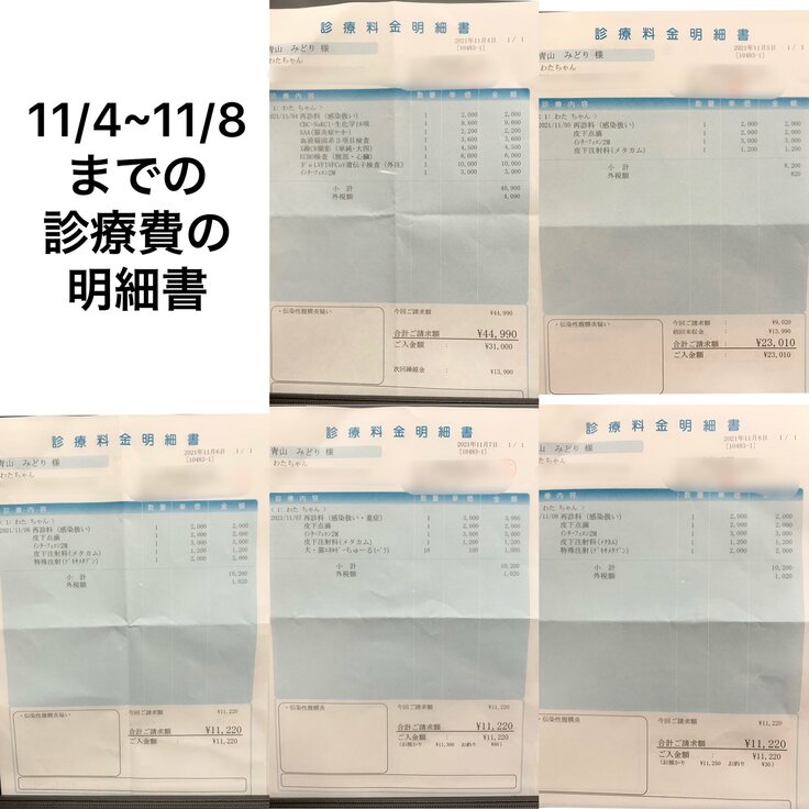 こちらが新薬の投薬前まで(11/4~11/8)の診療費の明細書です。
