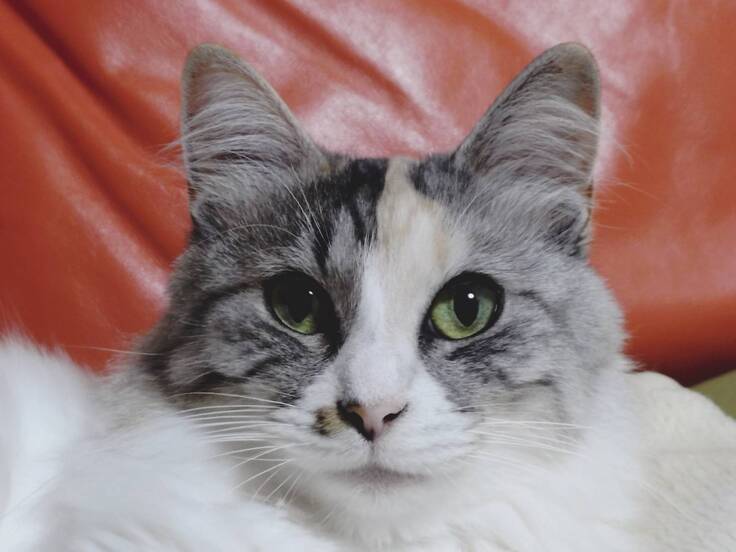 「顔のアップ写真。モデル猫?と思ってしまうのは親バカでしょうか。」