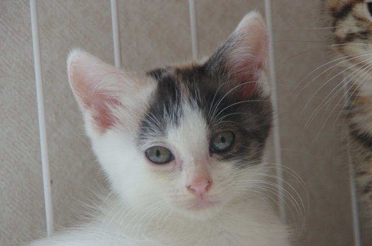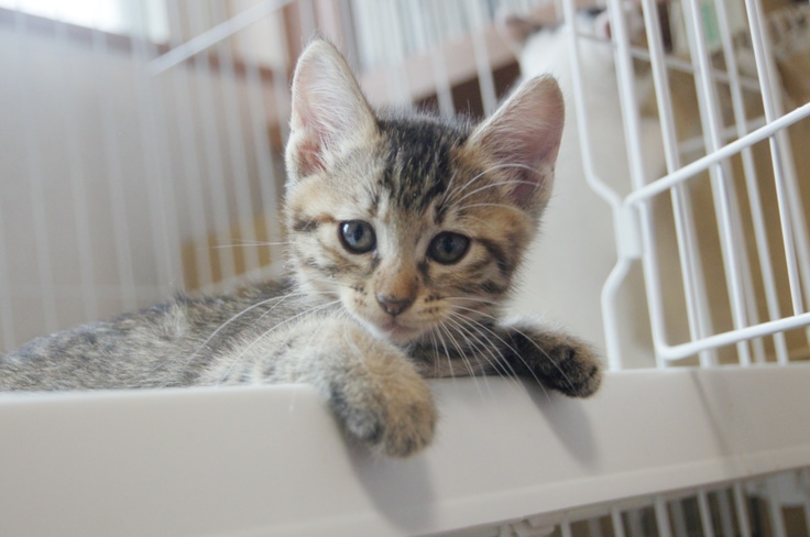手続きにお伺いしたところ、遠巻きに「なにしに来たんだろう」と、先住猫ちゃんと並んで私を見ていました。