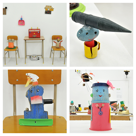 展示されたその土地の、海に落ちているモノを材料にしてオブジェを作ります。)