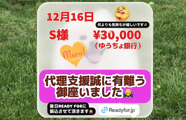 報告方法は、READY FORの活動報告欄・インスタにてさせていただきます。