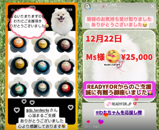 報告方法は、READY FORの活動報告欄・インスタにてさせていただきます。