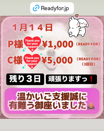 報告方法は、READY FORの活動報告欄・インスタにてさせていただきます。