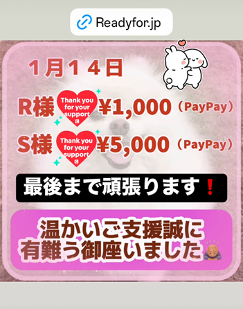 ※PayPayマネーでのご支援をお願いいたします。