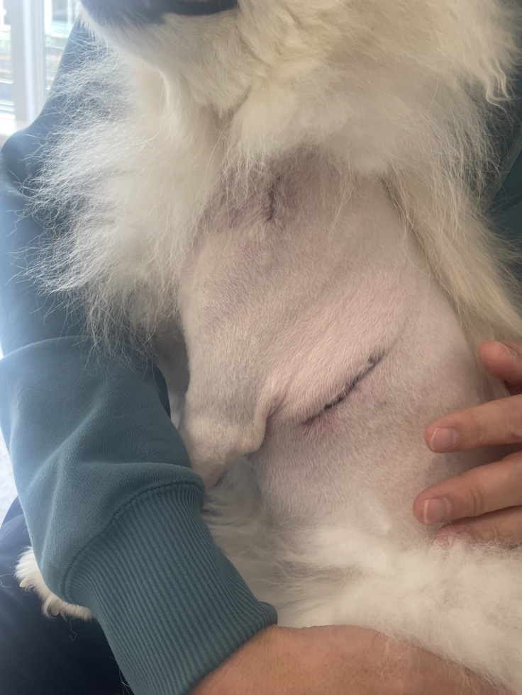 体毛や腕足の毛を剃られて寒々として、また、手術のキズが痛々しく、それでも嬉しそうにする元気なわたに思わず泣きそうになりました🥹