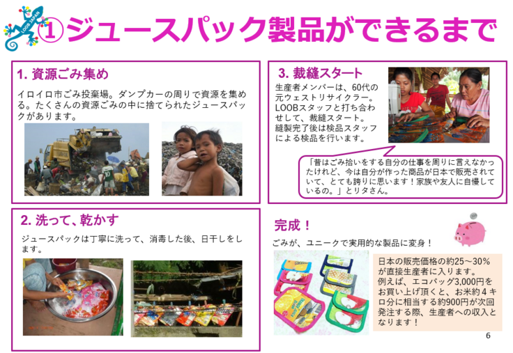 そこでフィリピンで活動するLOOBとの【ジュースパック製品存続プロジェクト】が誕生しました。