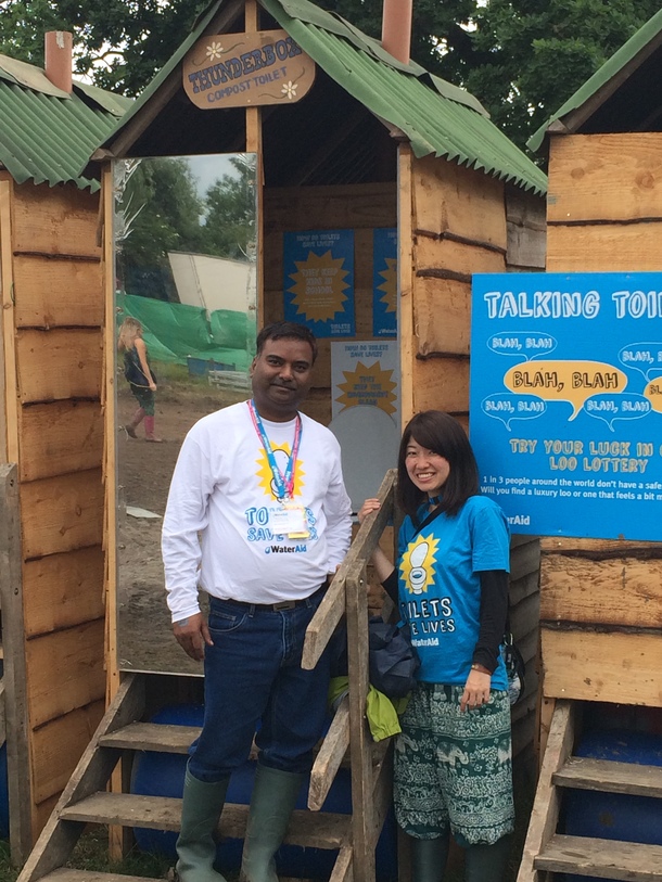 とりあえずは、以前ご紹介した「眺めの良いトイレ」の前でウォーターエイドインドスタッフのペニールと撮った写真を。