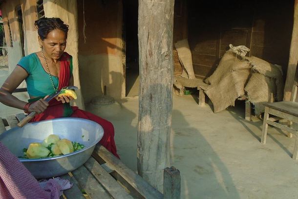「私の叔母がパパイアを切っているところです。月経の間はフルーツを食べてはいけないと言われてきましたが、実際初潮を迎えたときに食べても、特に悪いことは起きませんでした。私はパパイアが大好きですし、月経の間にフルーツを食べるのは健康にいいと思います。」―マニサちゃん