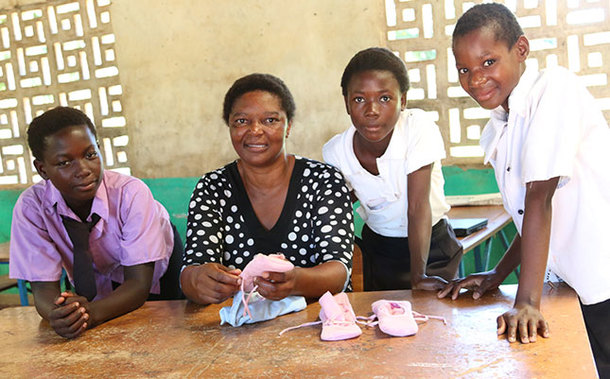 教師のアリスさんは、ウォーターエイドのサポートのもと、学校へミシンを導入しました。「ほとんどの女子生徒は貧しく、毎月生理用ナプキンを買う余裕がありません。そこで、私たちは繰り返し使える布ナプキンを自分たちで作ることにしたんです。」