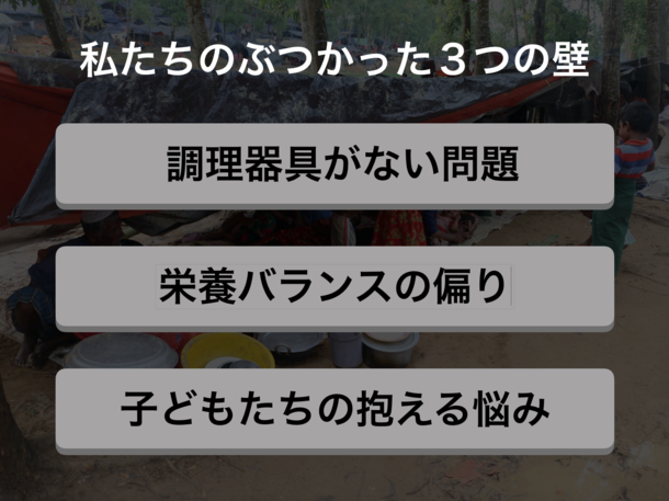 活動を繰り返している中で、私たちは現地の課題の深刻さと、より大きな支援の必要性を痛感するとともに、いくつかの壁にぶつかりました。