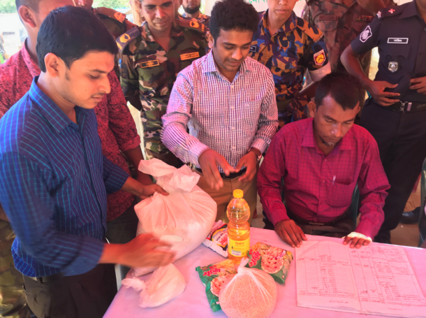 私たちは現在、難民キャンプを統括しているバングラデシュの軍関係者と共に活動していますが、食糧のパッケージ(米、豆、砂糖、塩、油)を届けた際にこんなフィードバックをもらいました。