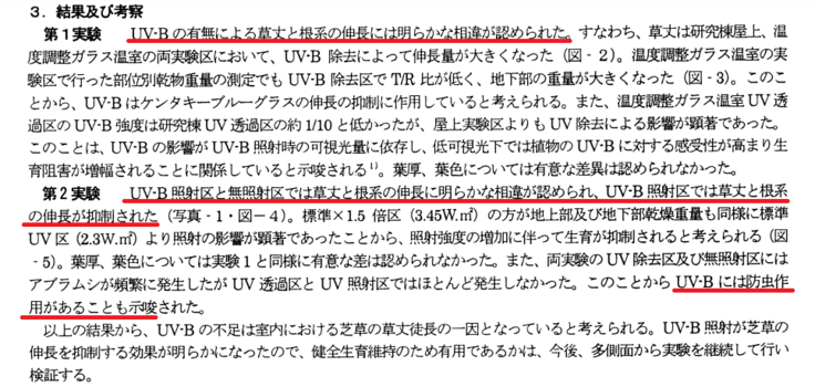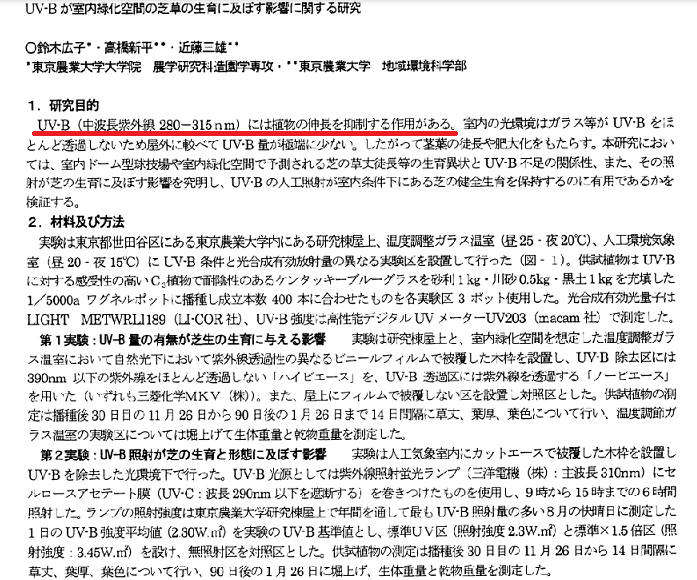 更に調べた結果、私の会社でもやっている紫外線LED除菌と似たようなものが見つかりました。植物の成長を紫外線が阻害する研究事例がありました。
