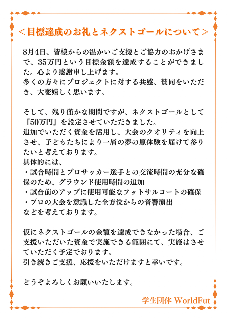 学生団体WorldFutは、皆様のご支援ご協力のもと