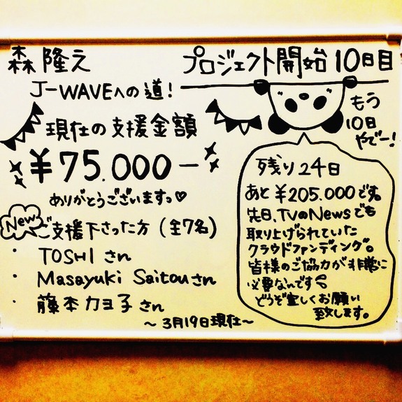 今日で10日経ちました。ご支援して頂くかたが着実に増えてきています。