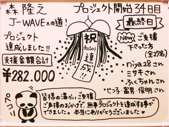 またご支援して頂いた方へのリターンなども追ってご連絡させて頂きますので今しばらくお待ちくださいませ。本当にありがとうございました!良い情報・番組になる様にしたいと思います!