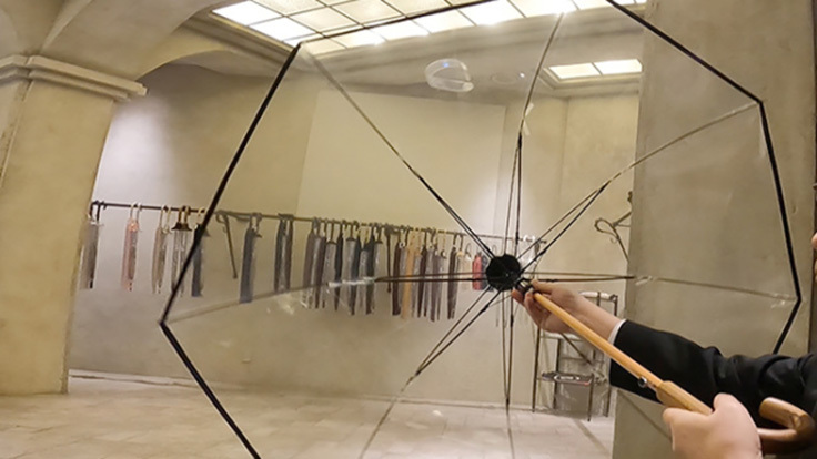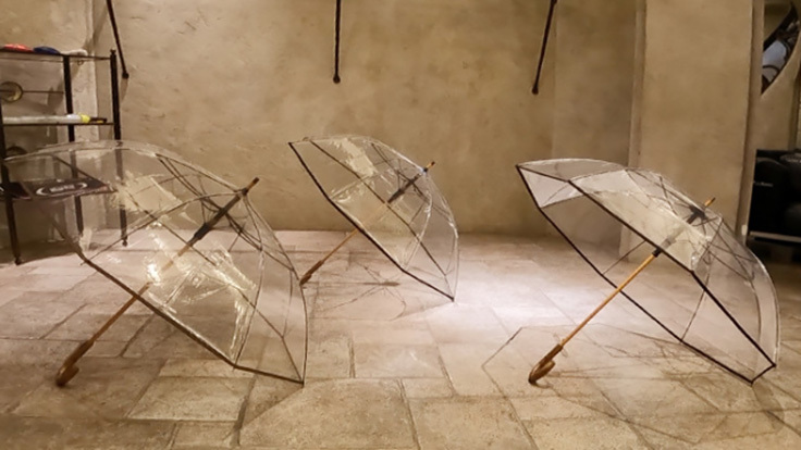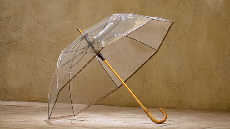 原始の時代から人間は空から降るあらゆるものから無防備です。雨・雪・風など屋内に逃げ込むか、地下にもぐるか。そんなあなたをしっかりお守りするのが360度視界良好な透明傘です。
