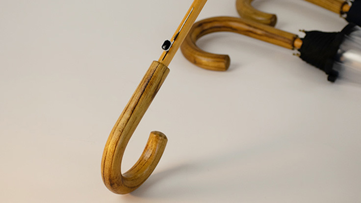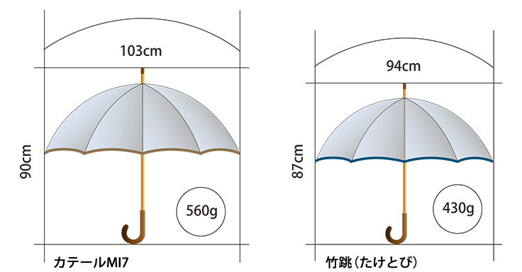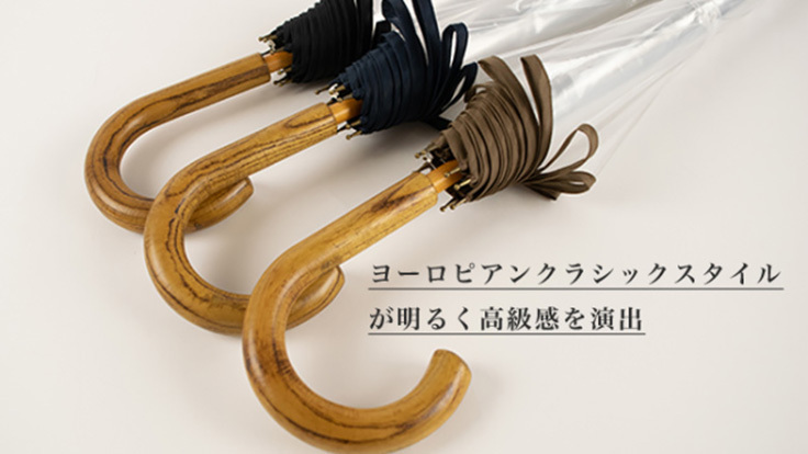 天然木の質感と逆支弁付きで強風にも耐えられる設計で、紳士用「カテールMI7」の高級感をそのままに婦人用「竹跳(たけとび)」には強さの中にも気品溢れる上品な傘に仕上がりました。