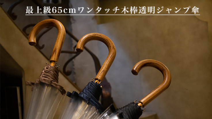 注意深く見るとそのほとんどが「中棒木製の高級ワンタッチジャンプ傘」なんです。特に車社会に欠かせないのが「ワンタッチジャンプ傘」。