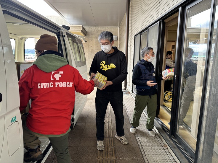 岩手県大船渡市で続く山林火災。発生から1週間余りがたった現在、1,200人以上の方が市内12か所の避難所で避難生活を続けています。避難生活がさらに長引くことが予想される中、Civic Forceは昨日6日、先日の聞き取り調査でニーズが高かった果物や野菜ジュースなどの支援物資を、越喜来小学校と三陸町中央公民館の避難所に届けました。