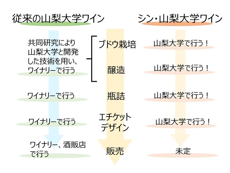 そこで、ブドウ栽培からワイン醸造、瓶詰め、エチケット・デザイン、販売までを全て山梨大学で行う「シン・山梨大学ワインプロジェクト」を始動します。