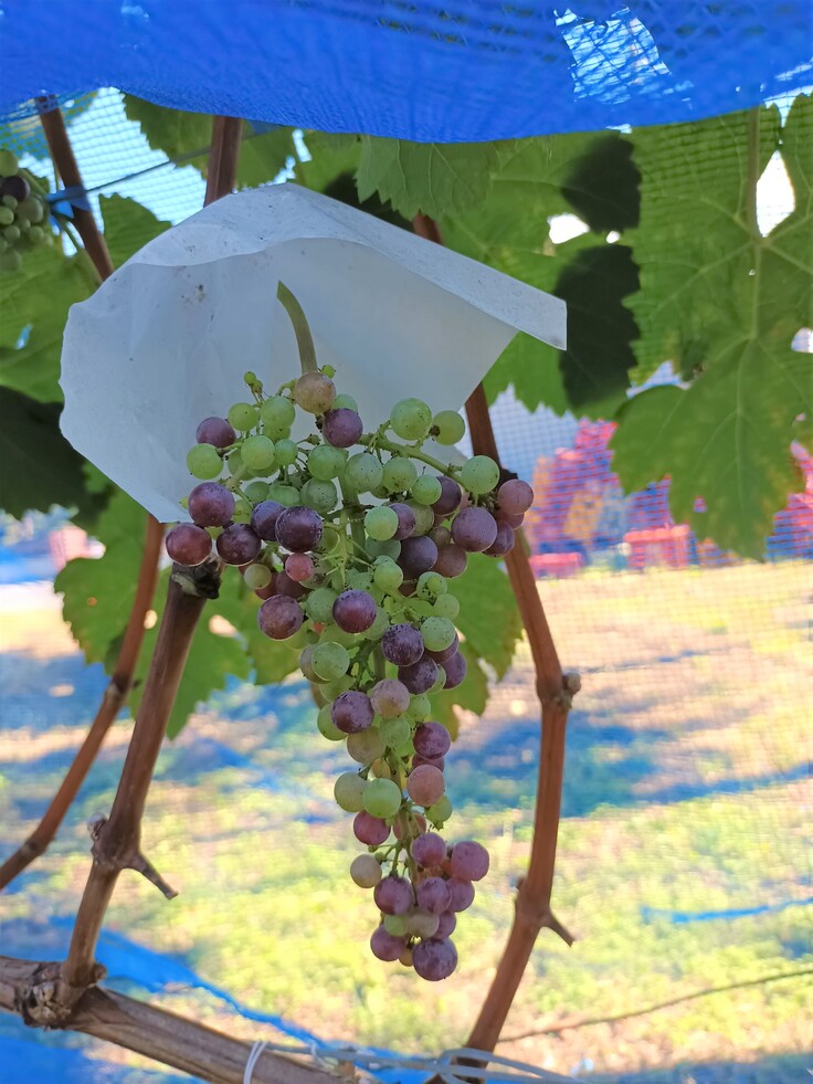 実際、山梨県ではカベルネ・ソーヴィニヨンやメルローなどの赤ワイン用品種の着色不良が頻繁に起きています。シン・山梨大学ワインプロジェクトでは、温暖な気候でもブドウ果実の品質を劣化させない栽培技術や温暖な気候に適した赤ワイン用ブドウ品種の育種を学生たちと行います。