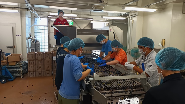 今年は記録的な猛暑の夏となりましたが、糖度と酸度のバランスを考え、甲州、マスカット・ベーリーAとも早い収穫を行いました。これまで以上に清らかな酸と柔らかい果実味を実現できるように醸造工程を工夫いたしました。現在は低温で熟成中です。2026年の販売に向け、学生・教員・スタッフが一丸となって瓶詰め・ラベル張りまで取り組んでいきます。