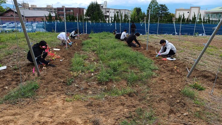 一昨年から先行して進めてきた育種苗を学生と植え付けしました。