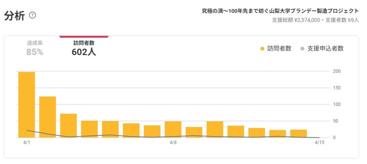 しかし、第一弾のワインプロジェクトと比較して、現在のサイト訪問者数が約半数程度に留まっています。これまでのところ訪問者は第一弾の半分程度です。
