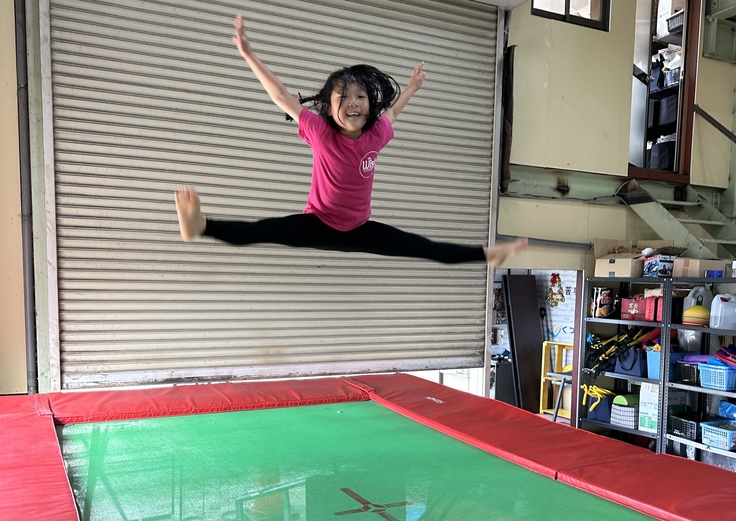 ただ現状教室で設置しているマットでは、跳躍の補助がなかったり、足首に負担がかかったりする為、これだけ上手に実施している生徒でも床での練習はさせていません。