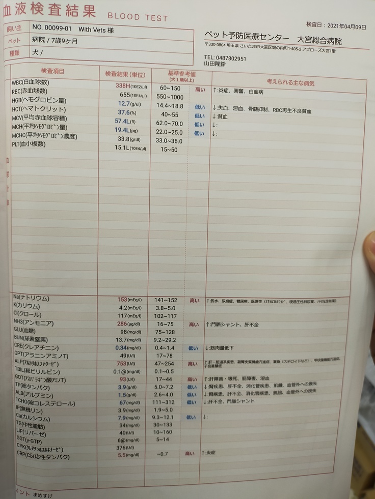 一見元気そうに見えますが、このまま手術をしないと肝不全で痙攣を起こしたり、最悪死んでしまう可能性が高いです。