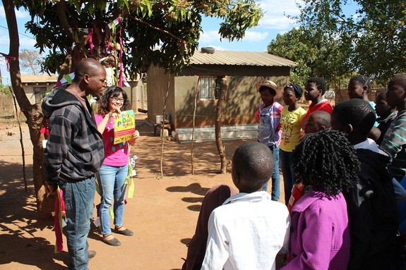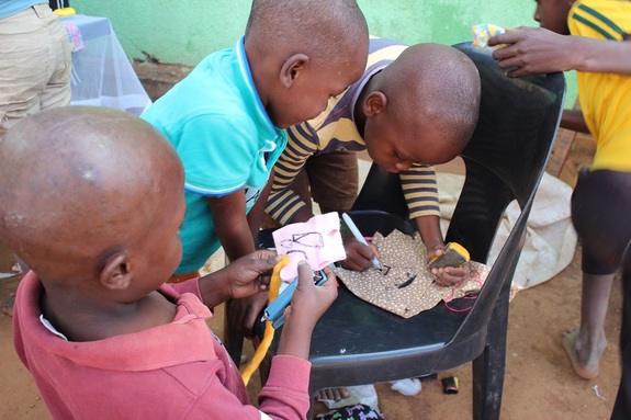 プログラムには少し離れたジャカンジャカ村にあるドロップインセンターの子どもたちもバスに乗って集まり、総勢64名の子どもたちが参加!大賑わいとなりました。厳しい生活の中にあっても輝くような目をした子どもたち。その熱中ぶりには目を見張るものがありました。