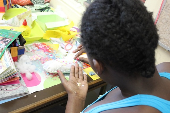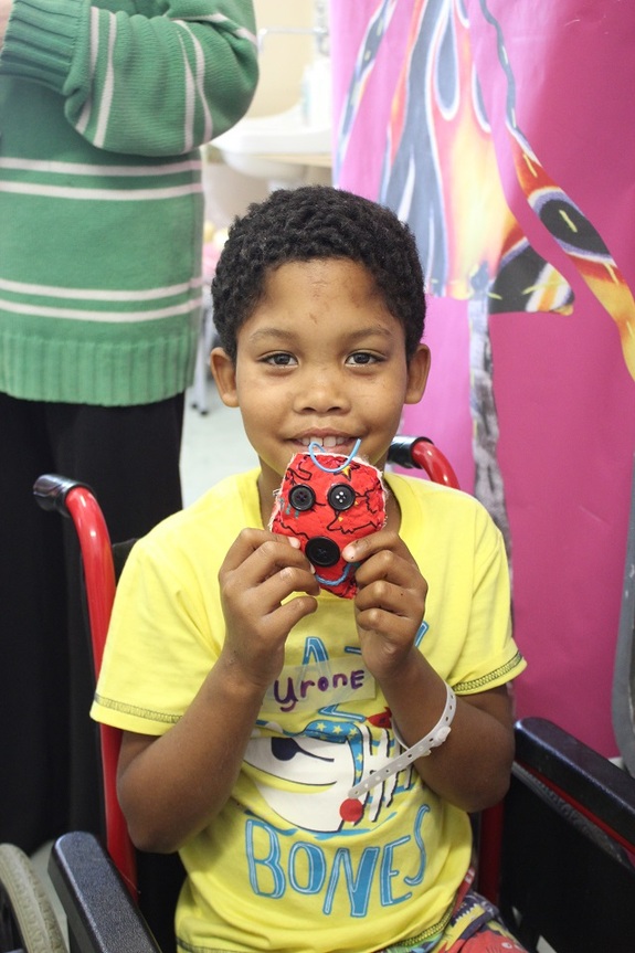 撮影が厳しく制限され、一部しか紹介できないのが残念でなりませんが、スタート前から「待ちきれない!」という様子で布をカットし始めた子どもたち。表現への大きな渇望を感じました。湧き上がるイメージを抑えきれず次から次へと作り続けた子、時間をかけて丁寧に作った作品を日本の病院の子どもたちへプレゼントしたいと申し出てくれた子。