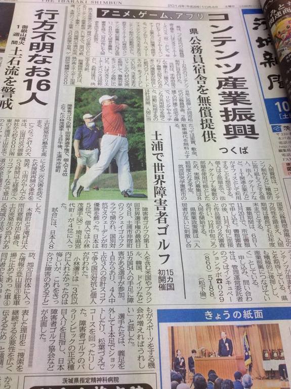 皆様に暖かいご支援をいただいた「第1回世界障害者ゴルフ選手権」は15カ国から54人の選手を迎え、9月28日〜10月3日に茨城県土浦市のワンウェイゴルフクラブで開催され、成功裏に終了いたしました。