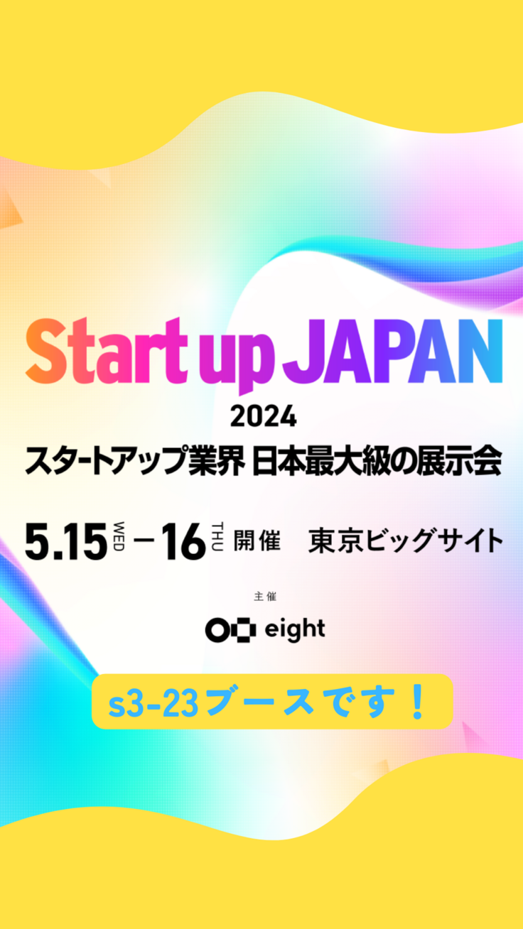 ご縁があり、5月15日・16日 東京ビッグサイトで開催される『Start up JAPAN』に出展させていただきます!