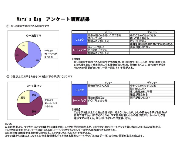 実はこのバッグを製作するにあたり、教室来てくださっているママたちや、お友達、さまざまなママにバッグのアンケートをとりました。