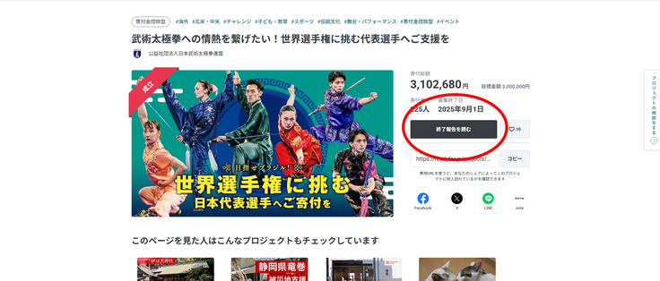 このたびは、「武術太極拳への情熱を繋げたい!世界選手権に挑む代表選手へご支援を」にあたたかいご支援をいただき、誠にありがとうございます。