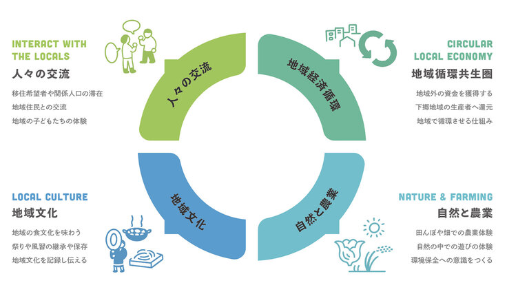 築100年の古民家〈雲耶 Kumoka〉を、移住や関係人口の交流拠点としてリノベーションし、長期移住のための賃貸スペースや、短期滞在ができる、お試し移住スペースや、田舎や自然を体験できるプログラムを提供します。