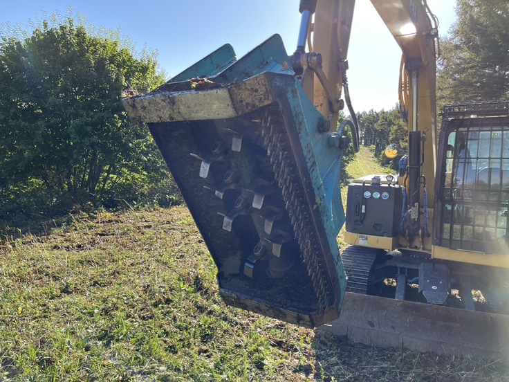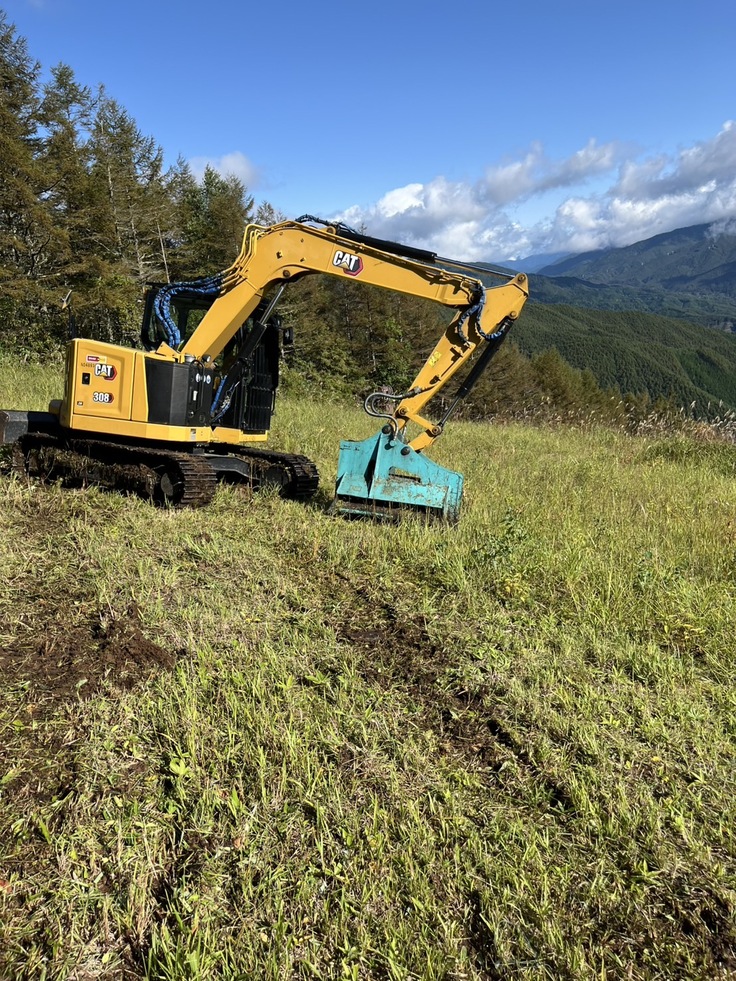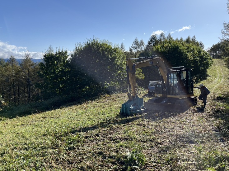今日は重機を入れて山頂ゲレンデの草刈りを行っています