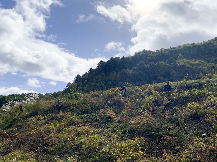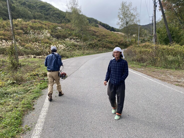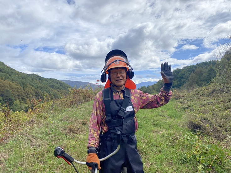 手をつけにくい急斜面を刈り進めていく姿は、スキーを滑っている時よりもカッコいいですね