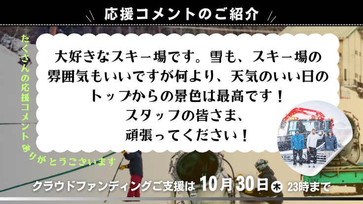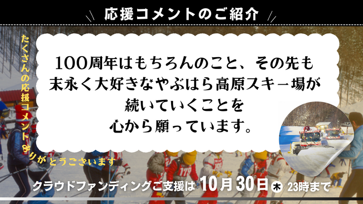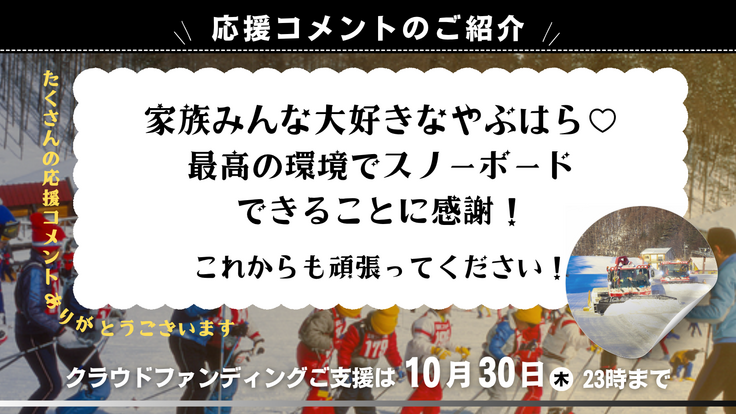 「やぶはら高原スキー場」が、これからも皆さまの人生の大切な思い出の場所であり続けるために、最後の最後まで皆さまと共に走り抜けたいと願っております。