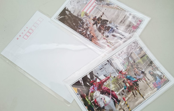 桜流鏑馬写真がプリントされたオリジナルポストカードにてお礼の気持ちをお伝えします。