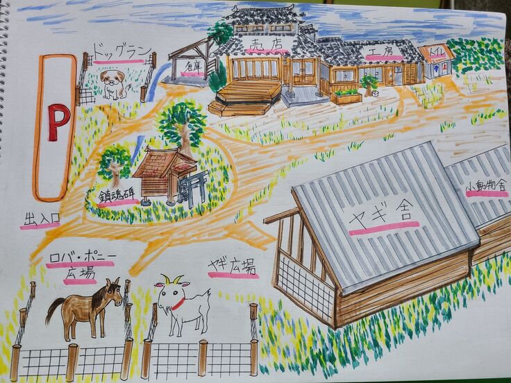 飼育している動物種の増加に伴い、動物たちを広々と飼育できる土地を探していたところ、移住してきてすぐにヤギ飼育繋がりで知り合った「上の台緑の村」を管理運営している「株式会社フォレスト」の代表山田順一さんの紹介がありました。島根県伯太町にある約2.5ヘクタールの畑地と、その畑地から数十分の位置にある清瀬町の元製材所も紹介してもらい、ふれあい活動や加工販売の拠点としてリメイクしようと考え購入をしました。