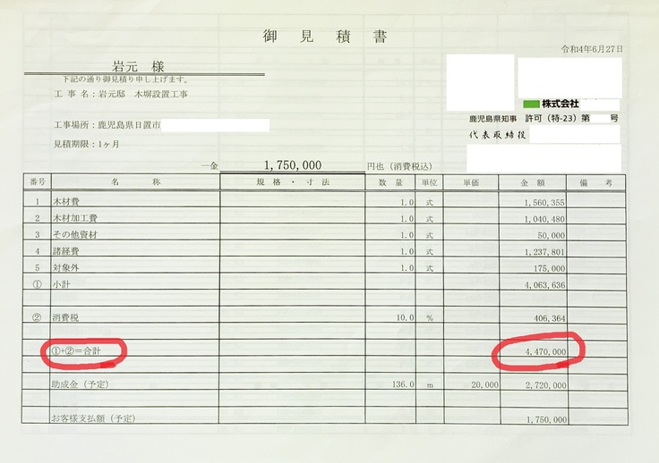 国の補助金を利用してフェンスを作るために業者に見積もりしたのですが、想定外の高額の175万円。そして、最終的には補助金申請が非常に難しく断念。補助金なしの場合、約450万円でした。