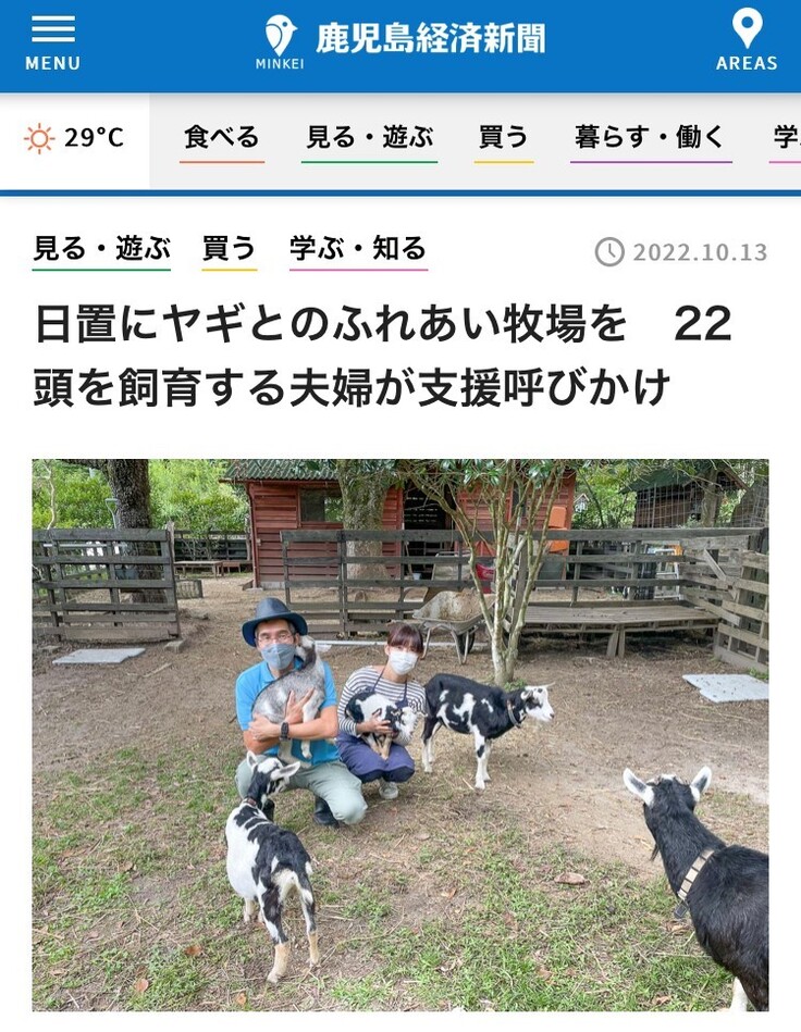 鹿児島経済新聞さんにヤギーズランドを取材していただきました。10月13日に記事としてアップされました。