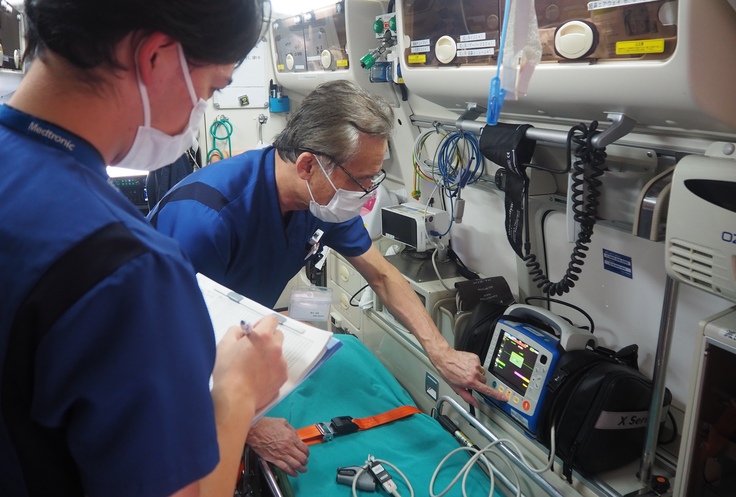 高度治療が必要な患者さんを、他の医療機関から自院へ搬送する。酸素投与やモニタリングが必要な患者など、高度な対応が必要なケースにも出動できる。